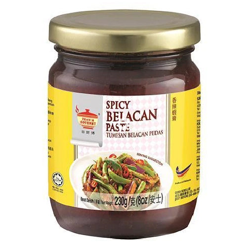 Tean's Gourmet Spicy Belacan Paste is popular shrimp belacan paste of Malaysian, which is spicy, flavoursome and adds great flavour to your cooking. Use in stir fries, curries, and other Asian dishes to add a spicy flavour to your food.