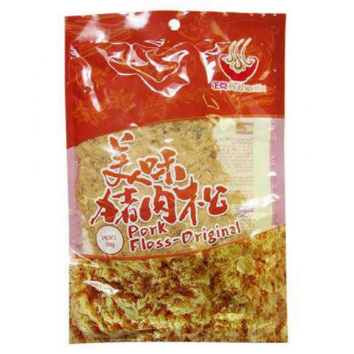 Rousong or yuk sung (肉松, 肉鬆), also known as meat floss, is a dried meat product with a light and fluffy texture similar to coarse cotton, meat floss can be made by pork, chicken, fish meat etc, originating from China.