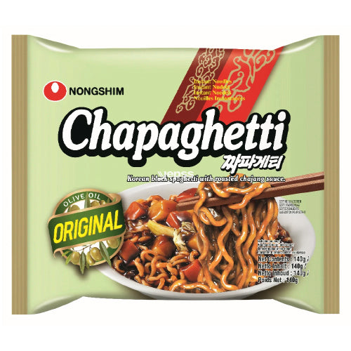 Chapaghetti was released in 1984 as ramyun-style jjajang instant noodles. The TV advertisement and CM song 'On Sunday, I am the chef for Chapaghetti became a great hit loved by the nation. The instant noodles are thick, smooth and chewy. Chajang soup made of chunjang and onion is delicious and offers the thick flavour of the original Chajang. Plentiful flakes of carrot, onion and meat and premium olive oil arouse the appetite. The product is great for eating when you don’t feel like eating!