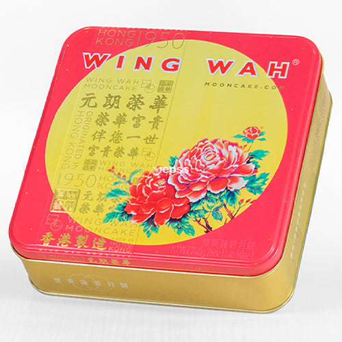 This beautiful Gift Box contains 4 individual delicious mooncakes filled with creamy smooth sweet yellow lotus seeds paste and salted egg yolk. High-quality Hunan lotus seeds are used to produce fragrant yellow lotus seed paste, the taste is sweet and fine. Product of Hong Kong Wing Wah.