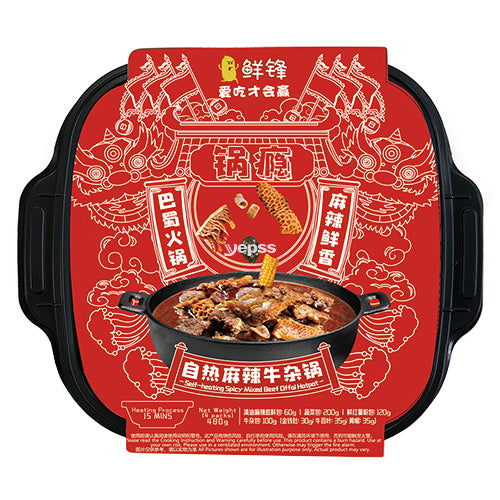 With this Xian Feng Self Heating Hotpot Spicy Mixed Beef Offal flavour, you can enjoy hotpot anytime, anywhere you want, ready in 15 minutes!