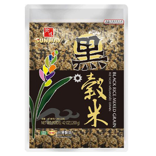 This product is a mixture of different black grains. It can be served on its own or cooked with other kinds of rice. It also tastes good as a sweet porridge.