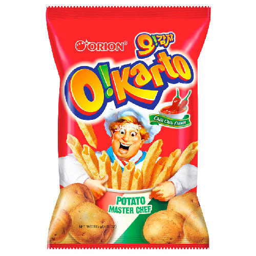 Oh Gamja O Karto potato chilli chilli spicy chips from the Orion Oh Gamja O Karto potato Snack series, which is made like real French fries from ordinary fast food restaurants, but the inside is empty. It is a crispy and spicy flavoured Orion Oh Gamja O Karto potato snack with a crispy texture. Made perfect for your maximum enjoyment.