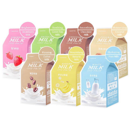 A'Pieu Milk One Pack sheet masks contains milk protein extract to hydrate the skin and prevent further dryness. Real milk essence delivers deep hydration to the skin and gentle exfoliation - removing dead skin cells and plumping for that youthful glow. Made from 100% cotton, with a special honeycomb texture, to impart extra product.