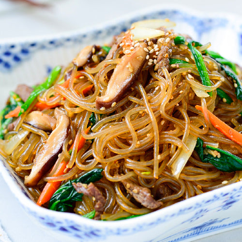 Sweet Potato Glass Noodles is the main ingredients to make Korean (Stir-fried Noodles) Japchae or Chapchae (잡채) is a very popular Korean dish. Making the authentic, delicious Japchae with this sweet potato glass noodles at home.