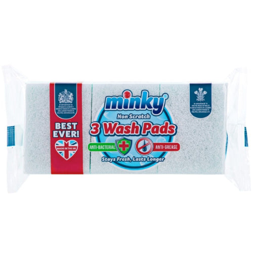 Minky Non Scratch Sponge Scourers Anti-Bacterial & Anti-Grease 3pk